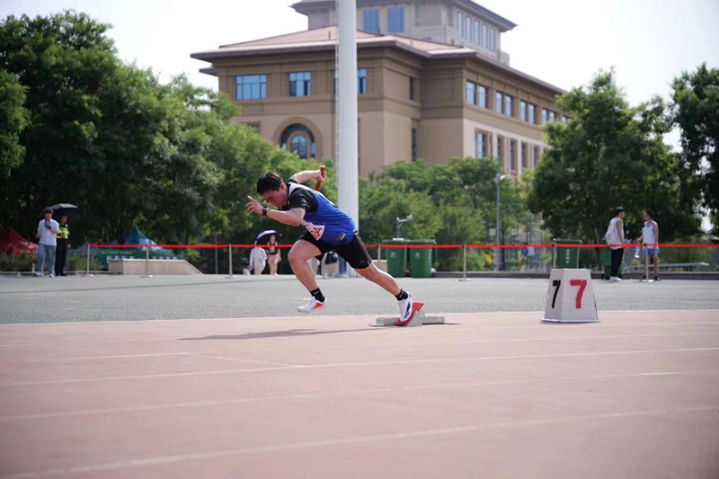 跳高比赛中,飞设2202班王浩楠同学纵身一跳,如矫健的雄鹰翱翔天际,在空中划出一道美丽的弧线,获得男子跳高第六名的好成绩,取得了学院在校运会上零的突破。